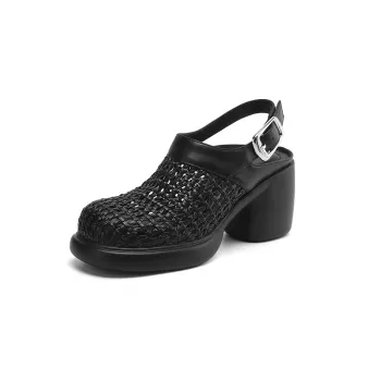 Chunky Heel Platform Sandals for Women with Covered Toe and Hollow Out Design